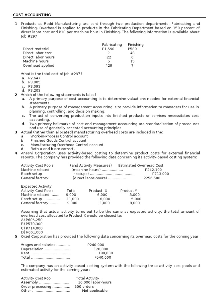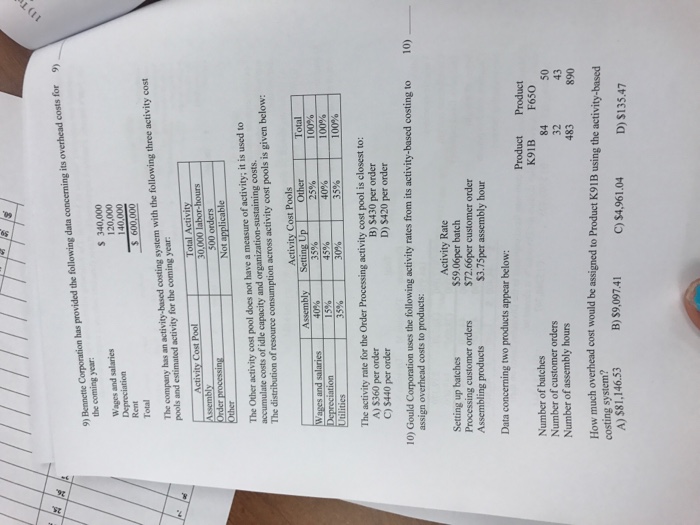 Activity Cost Pools Estimated Overhead Cost EOC Expected Activity. Data concerning the companys product L19B appear below. 8231 per unit C.