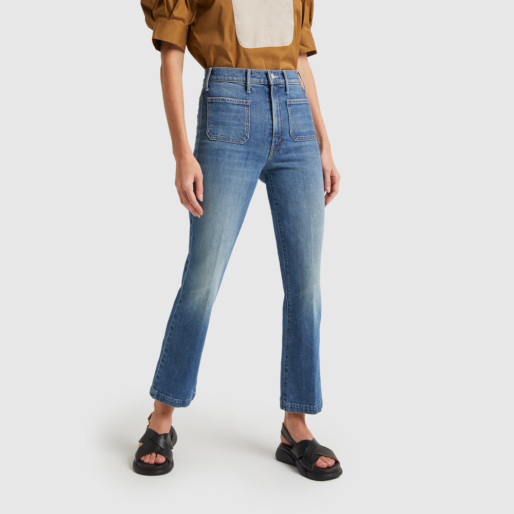 Mother hustler patch pocket. The Cowboys Dont Cry jeans feature patch pockets semi-rigid denim light fading and whiskering and hit at the ankle with a clean hem. MOTHERs bestselling high-rise flare has an ankle-length inseam clean hem and patch pockets. Cut from a SUPERIOR cotton blend with a touch of stretch Act Natural is a creamy white hue.